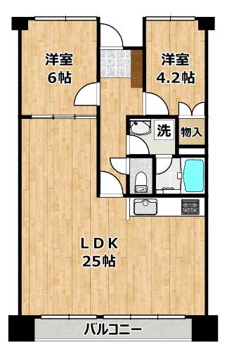 | 間取り | 2LDK | 間取り内訳 | LDK25畳 洋6畳 洋4.2畳 |