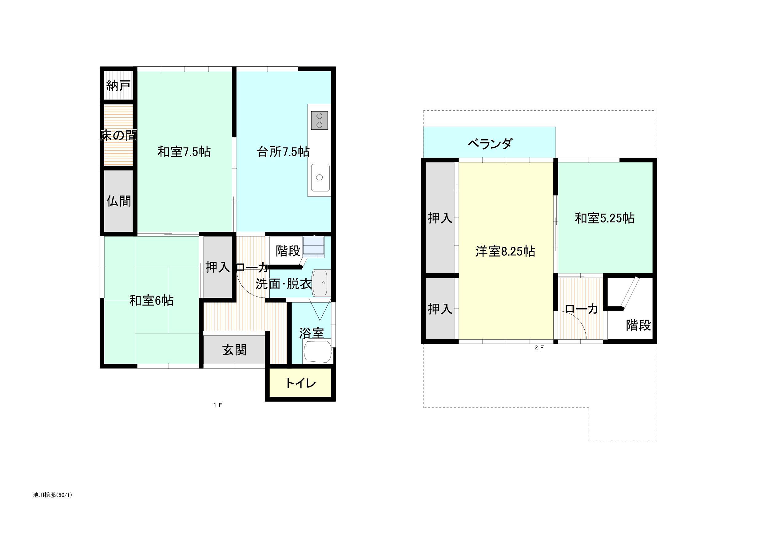 | 間取り | 4DK | 間取り内訳 | DK7.5畳 和7.5畳 和6畳 和5.2畳 洋8.2畳 |