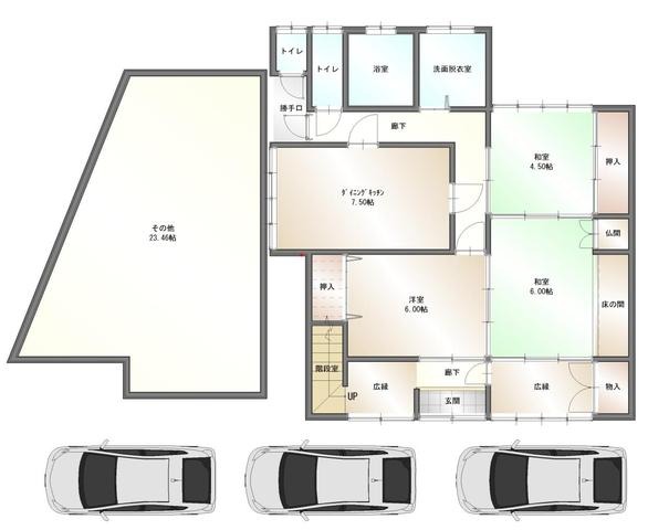 ■間取りは5DK+離れスペース、駐車は縦列で3台可能。